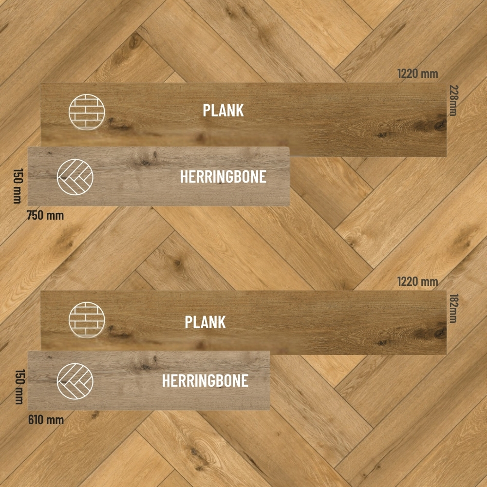 Herringbone Sizes : 150 × 610 × 5 + 1.5 mm | 150 × 750 × 5 + 1.5 mm