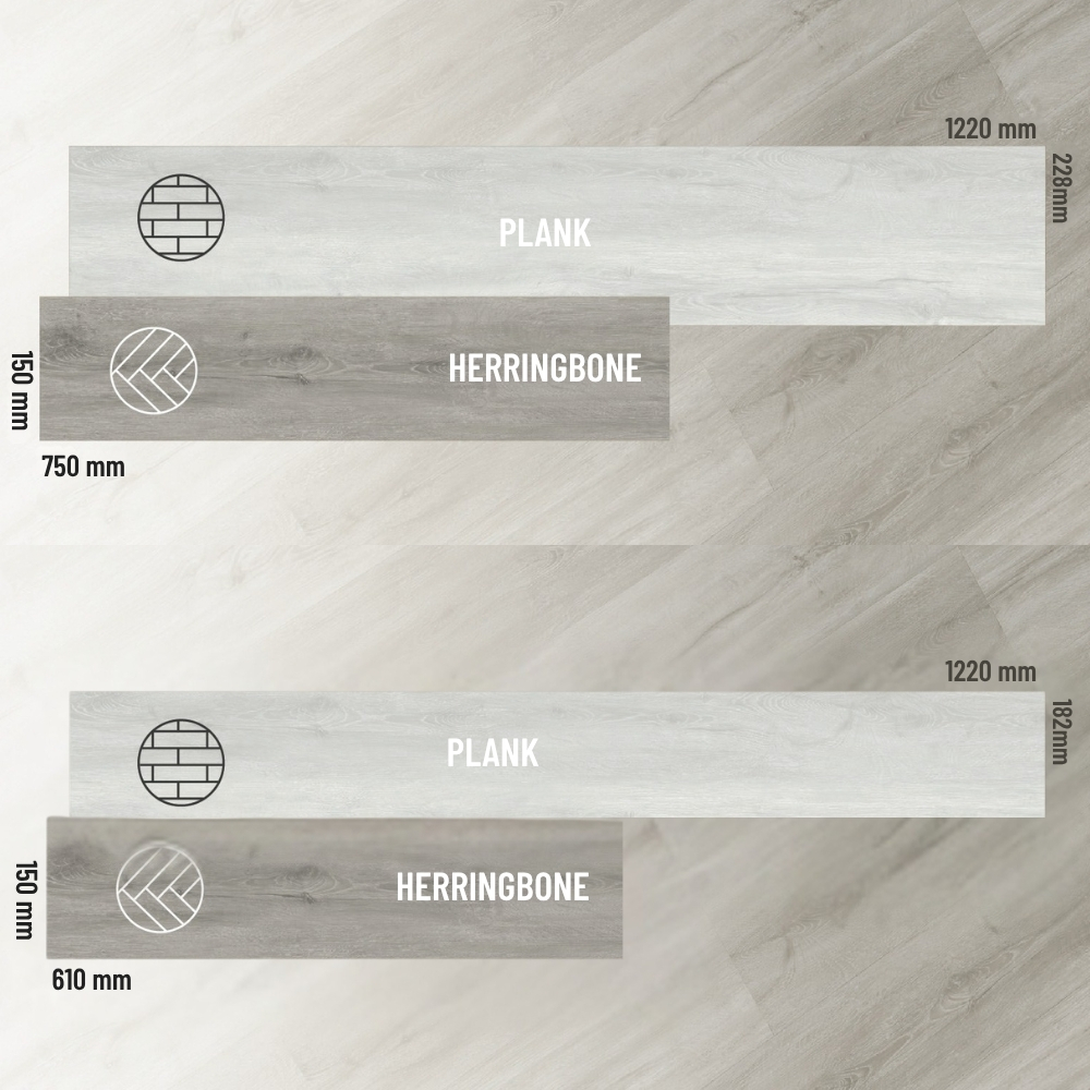 Herringbone Sizes : 150 × 610 × 4 + 1 mm | 150 × 750 × 5 + 1 mm